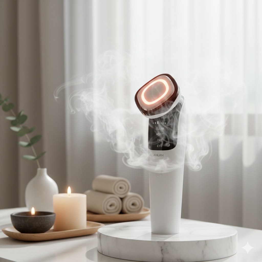 Redefine your facial contours with the ANLAN EMS Facial Massager, a sophisticated 5-in-1 device that combines the most effective aesthetic technologies into one elegant tool. This is the centerpiece of the Gloow Lady "Tech-Luxe" routine, targeting the three pillars of aging: loss of firmness, diminished radiance, and deep-seated impurities.